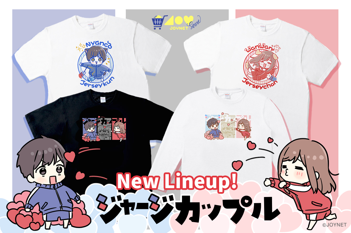 ジョイネットストアより、ジャージカップルの2人のTシャツデザイン3種 新発売!